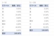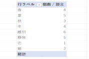 ピボットテーブルを使い、部立(題材による分類)で、小倉百人一首の全体を把握してみましょう。